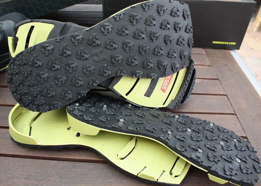 Besonderes Augenmerk legten wir im Test natürlich auf die H-Lock Wechselsohlen und deren Handhabung, sind sie doch das Markenzeichen dieses Watschuhes & Herstellers. Mitgeliefert werden hier 2 Paar profilierte WadeTech Gummisohlen mit und ohne Spikes. Über ein Verschlusssystem, bestehend aus je zwei Druckpunkten seitlich und hinten am Schuh und ein um 90 Grad drehbares Haltesystem werden die Sohlen absolut sicher und frei von Fremdkörper-Eindringen in Sekundenschnelle gewechselt und im Sohlenbett eingerastet. Einmal montiert, sitzen sie bombenfest, sind vollständig trittsicher und lösen sich auch im schwierigen Gelände oder unter harter Beanspruchung nicht ungewollt. Das System ist absolut ausgereift, wir sind beeindruckt. Die verschiedenen Sohlentypen stellt sich der Fischer je nach Gewässeruntergrund und Laufkomfort ganz so zusammen, wie benötigt. |