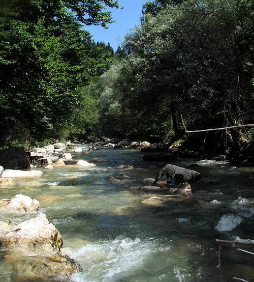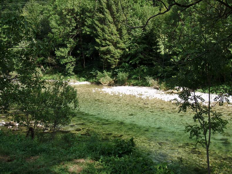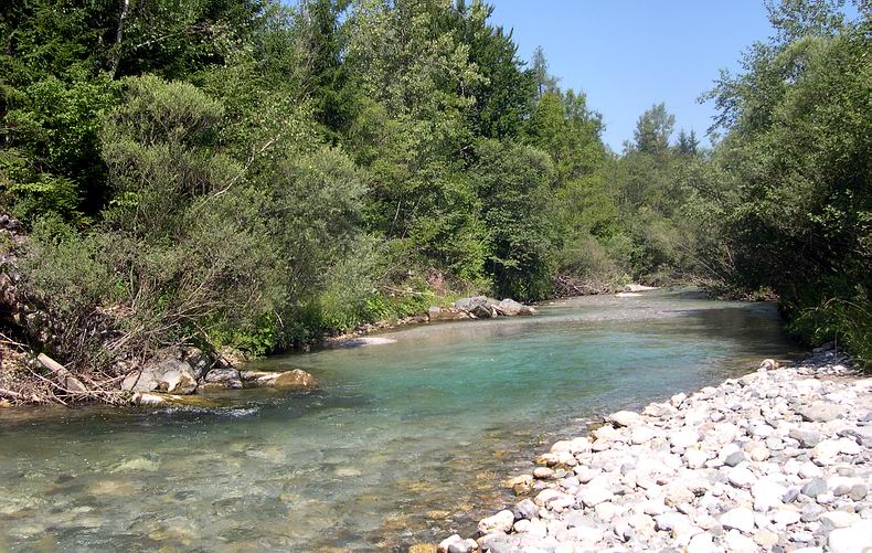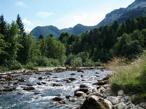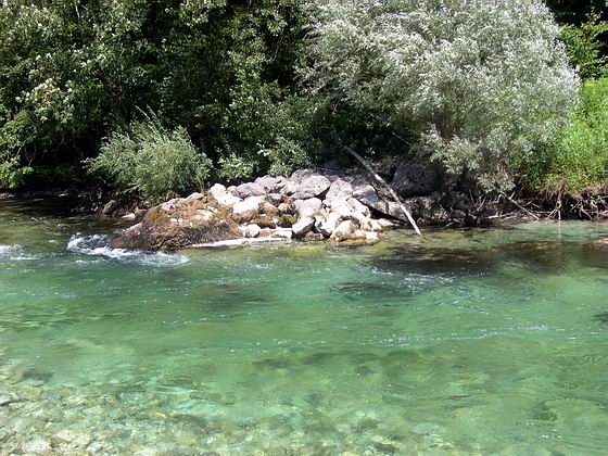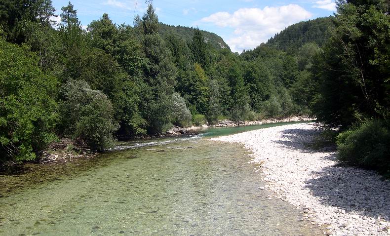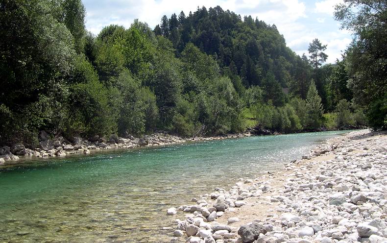 Unten: Schöne Rausche der Sava mit smaragdgrünem Wasser |