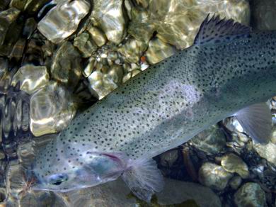 | Regenbogenforelle aus dem Pool oberhalb der Brücke | Nach dem Foto geht es wieder in die Freiheit |