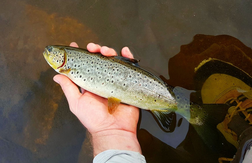 Bereich kann ich dann zumindest noch einige kleine Forellen landen, eine