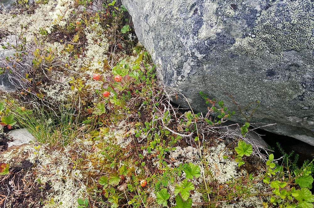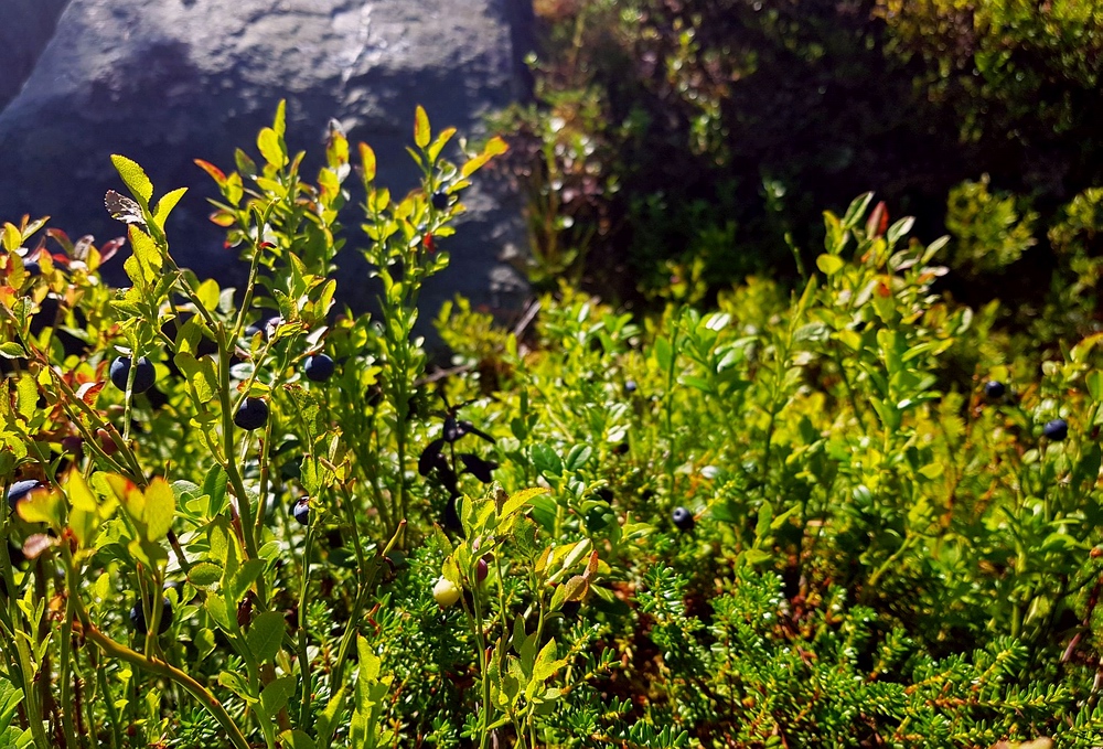 | Normalerweise ergänze ich meine Mahlzeiten hier im Norden ja gerne mit Beeren und Pilzen, damit sieht es diesen Urlaub leider sehr schlecht aus, die Blaubeersträucher sind alle leer, Moltebeeren sind entweder noch steinhart oder schon schlecht und Pilze gibt es auch keine. |