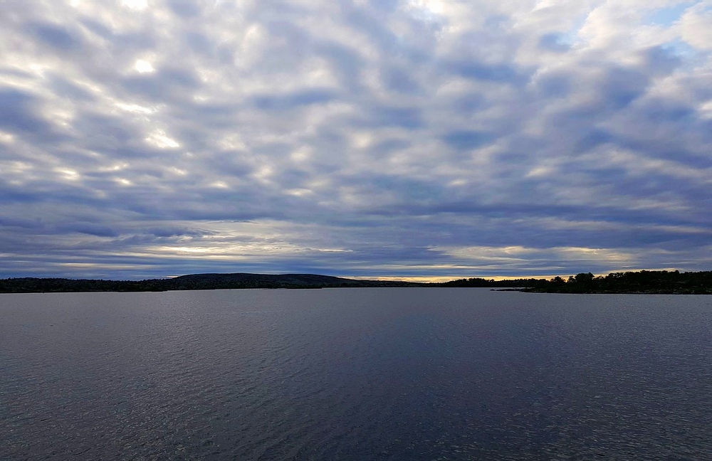 Morgens wache ich zeitig auf, da es im Zelt sehr warm wird. Das Wetter hat sich deutlich verbessert, der Himmel ist wieder frei und es weht nur noch ein sehr leichter Wind, so dass ein Großteil des Sees spiegelglatt vor mir liegt. |