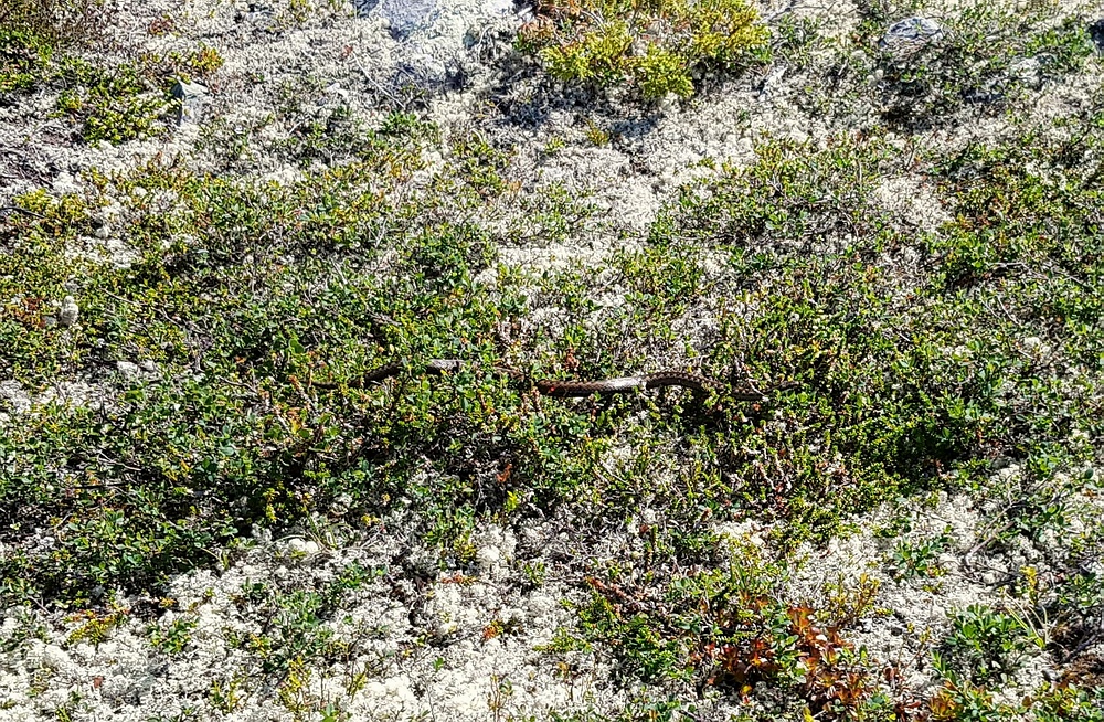 | Während ich grade am höchsten Punkt der Tour die Aussicht über die Reva und die Røa bewundere, höre ich vor mir ein Rascheln. Eine Kreuzotter, die ich beim Sonnenbaden gestört habe, verzieht sich schnell unter einen Stein. |