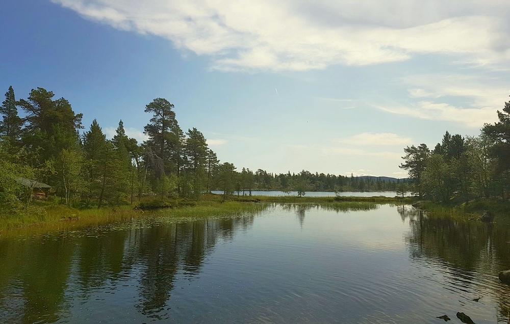 26.07.2019 Nachdem ich noch bis spät abends meine Ausrüstung geprüft und gepackt hatte, machte ich mich nach einer eher unruhigen Nacht gegen 8 Uhr morgens auf den Weg Richtung Norden. Leider wurde kurz vor dem Urlaub mein Auto zum wirtschaftlichen Totalschaden erklärt und mir von der Werkstatt dringend abgeraten, damit in den Urlaub zu fahren. Zum Glück erklärten sich meine Eltern dazu bereit, für den Urlaub die Autos zu tauschen, daher machte ich einen kurzen Zwischenhalt in Kiel, danach ging es dank Vollsperrung der A7 über Eckernförde weiter Richtung Norden. Über die Brücke, vorbei an Kopenhagen und Göteborg. Gegen 22 Uhr reicht es mir langsam mit der Fahrerei, leider bin ich genau auf der Höhe Oslo und die hier vorhandenen Raststätten laden nicht gerade dazu ein, hier eine Nacht zu verbringen. Ich fahre noch fast eine Stunde weiter, bis ich eine ruhige Ecke in der Nähe einer Tankstelle finde. Schnell die Isomatte aufpumpen und ab in den Schlafsack... 27.07.2019 Morgens erst mal das Auto wieder reisefertig gemacht und mir an der Tanke Frühstück und einen Kaffee besorgt, nochmal an der Bank gehalten, um ein paar Kronen Bargeld dabei zu haben und dann geht es weiter Richtung Ziel. Zwischenzeitlich mache ich kurz Rast an einem See mit herrlichem Panorama und glasklarem Wasser, direkt vor meinen Füßen schwammen Elritzen und an der Kante waren Forellen am patrollieren. Ich konnte mich gerade noch zurückhalten... |
