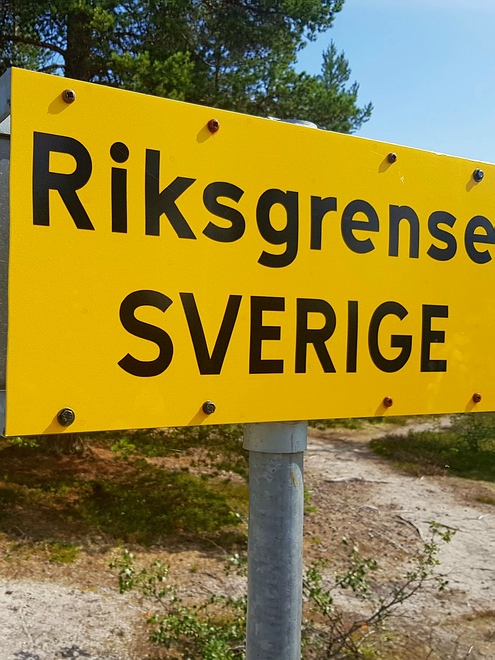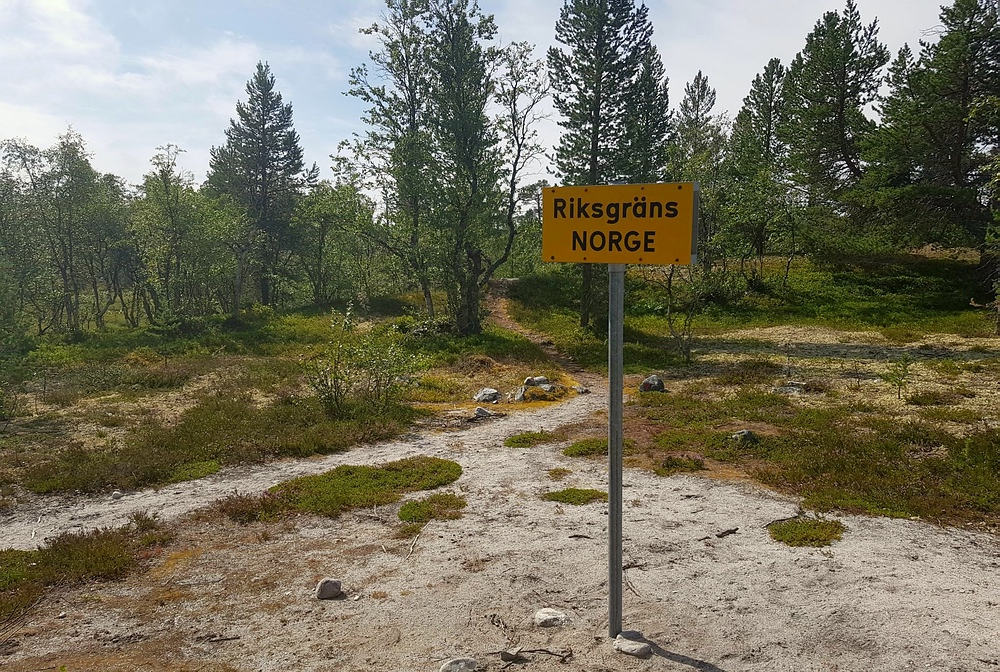 | Einige Meter weiter verläuft die Grenze zwischen Norwegen und Schweden, nach einem Foto mit einem Bein in Norwegen und einem in Schweden geht es aber auf der norwegischen Seite weiter Richtung Røa. |