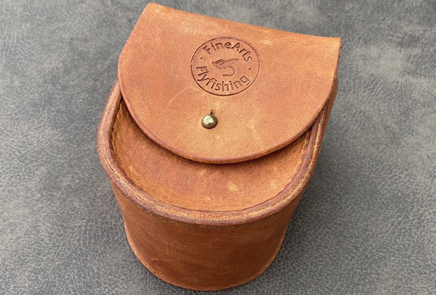 • Höhe: 12 cm • Breite: 9 cm • Tiefe: 9 cm • sicherer Verschluss als Knopf/Schlitz • Gewicht: 160 Gramm • Farbe: mittelbraun • mit Stempel "FineArts Flyfishing" auf der Vorderseite • Preis: 58,80 Euro |