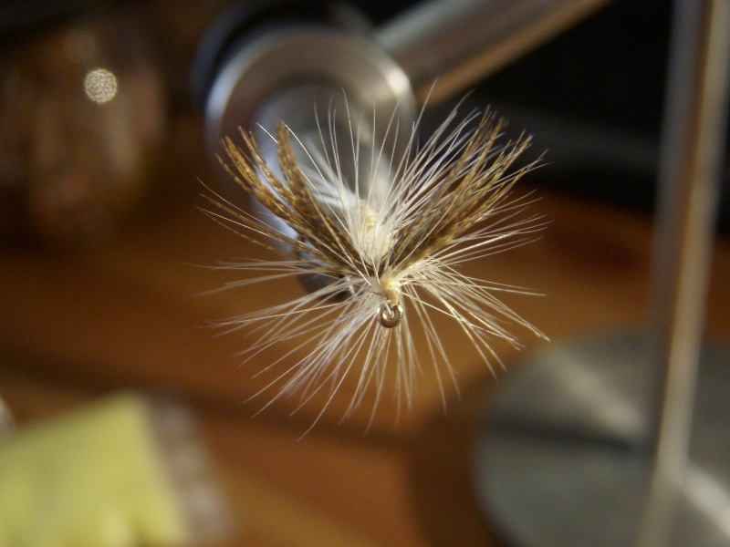 Ich hatte heute mal wieder etwas Zeit zum Binden und mich der Adams Irresitible gewidmet. Weil sie gut schwimmt und mir eine Gekaufte meine erste TF-Forelle beschert hat.