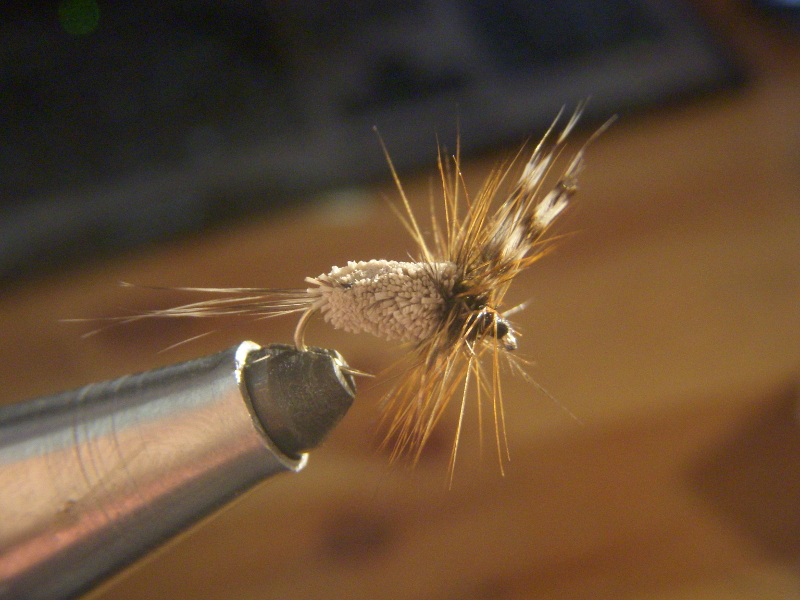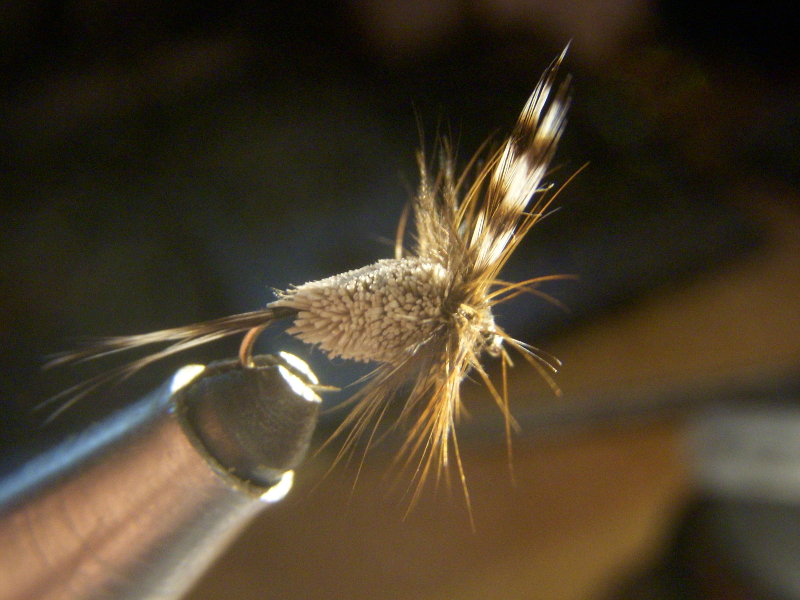 Ich hatte heute mal wieder etwas Zeit zum Binden und mich der Adams Irresitible gewidmet. Weil sie gut schwimmt und mir eine Gekaufte meine erste TF-Forelle beschert hat.