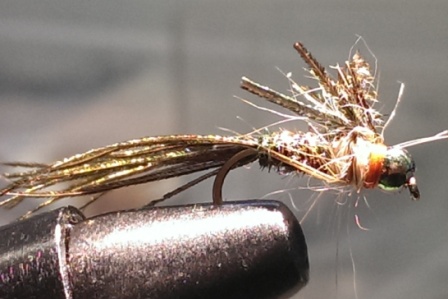 pheasant tail nymph, mit Kupferdraht und Glasperle kombiniert: Hakengröße 10