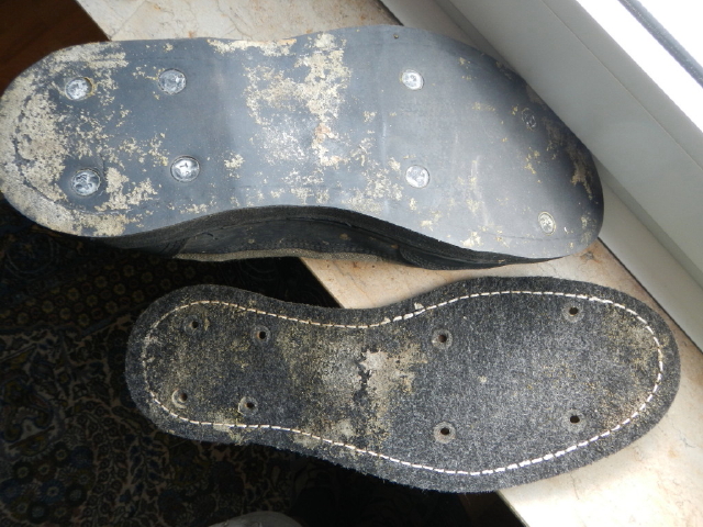 Die Filzsohlen haben sich beide komplett nach nur etwa 20 Angeltagen abgelöst.