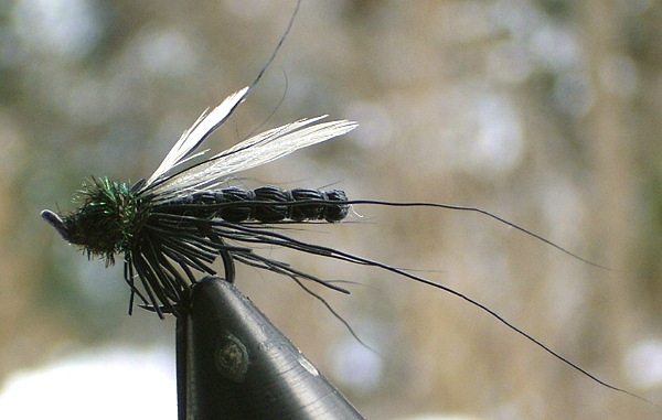 Ist zwar nicht so schön wie die in der Zeitschrift, aber nach einigen Versuchen wird dies sicher noch besser werden. Ob sie fängig ist, wird sich hoffentlich zeigen wenn die Köcherfliegen steigen.