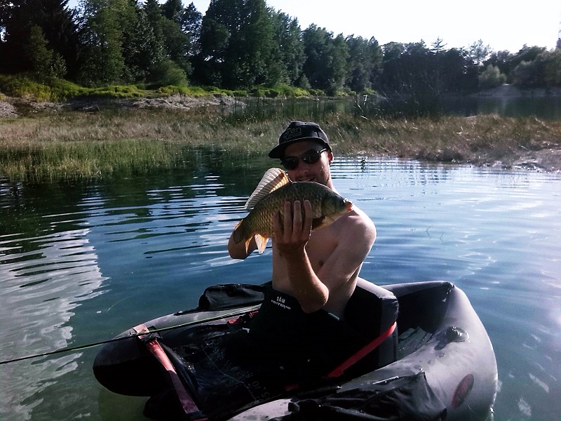 ich konnte gestern eine Karausche auf Sicht mit der Fliege vom Belly-Boat aus überlisten. Gefangen habe ich sie in einem Baggersee an dem gegen 18:30 noch viel Badebetrieb war mehr oder weniger zufällig beim Karpfenfischen. Als "Fliege" kam ein Stück Küchenschwamm, sprich die gute alte Brotfliege zum Einsatz.