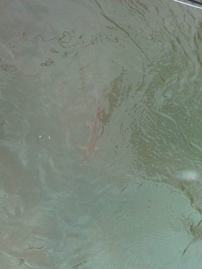 Eine der Forellen hatte einen relativ großen orangenen Fleck auf der Schwanzflosse, das wäre mir so bisher noch nicht bei Bachforellen aufgefallen: