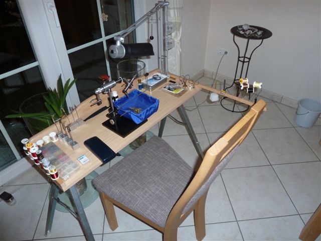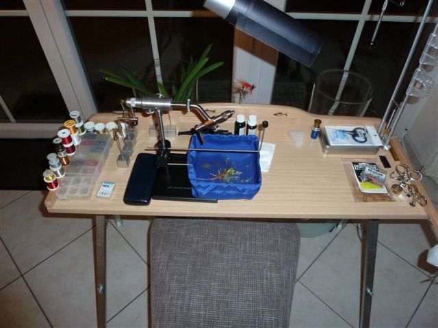 ich habe in Zusammenarbeit mit und für einen "guten Freund", (der hoffentlich mit liest) hab mir vorgenommen, einen "Tool Caddy", quasi individuell auf den Binder abgestimmt herzustellen. Also so eine Art Bindetisch nur noch besser. Nach langem überlegen, messen, sägen, hobeln bohren, schleifen, bin ich bei einem absolut genialen Ergebnis angekommen! Das Teil ist zwar etwas größer, (wie gewünscht und abgesprochen) so finden aber alle Dinge ihren Platz, die der moderne Fliegenbinder gern schnell zur Hand hat.