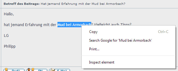 Re: Hat jemand Erfahrung mit der Mud bei Armorbach?
