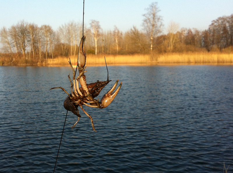 Die Flusskrebse haben die Schnur richtig gepackt und dieser hier wollte auch gar nicht los lassen. Nach mehreren Minuten konnte ich mit etwas Nachdruck überreden los zu lassen.