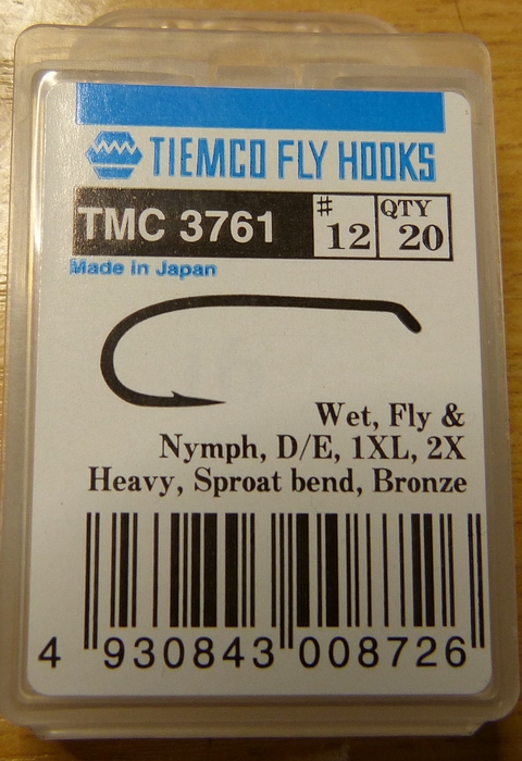 12, in diesem Fall den Tiemco 3761. Der Widerhaken wird angedrückt.