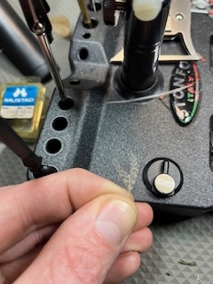 und ca. 6mm vor dem Öhr mit einem HalfHitch gesichert.