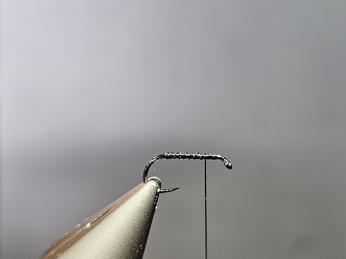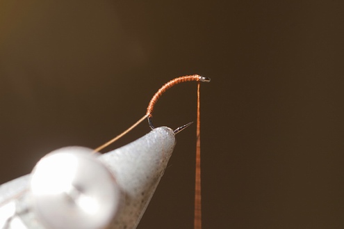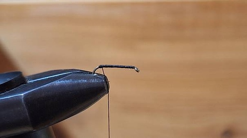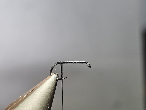 hier ein Tiemco 2488 in #16 wird eine Grundwicklung mit
