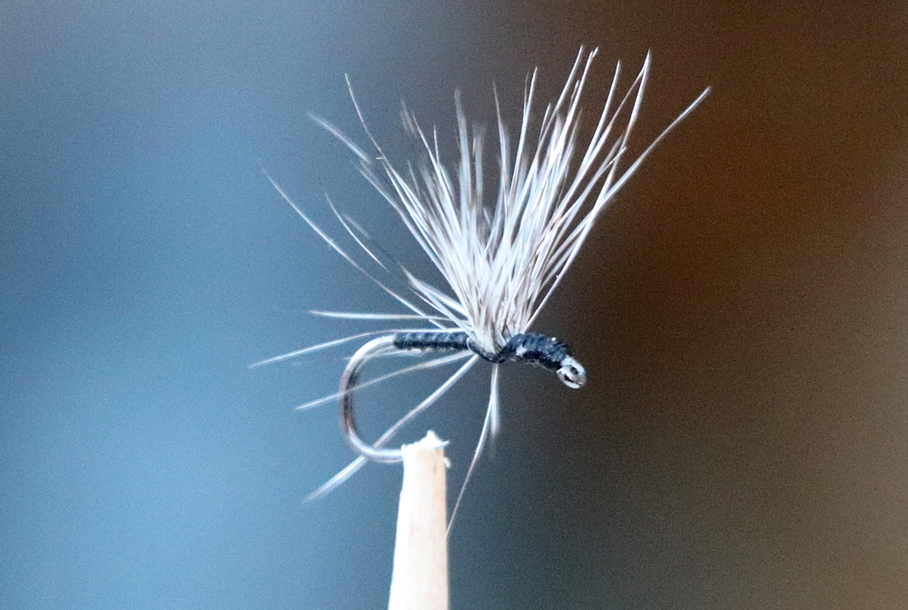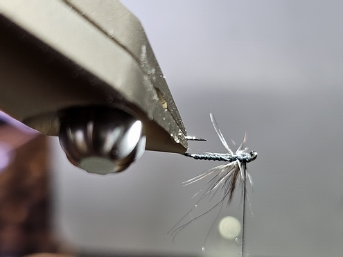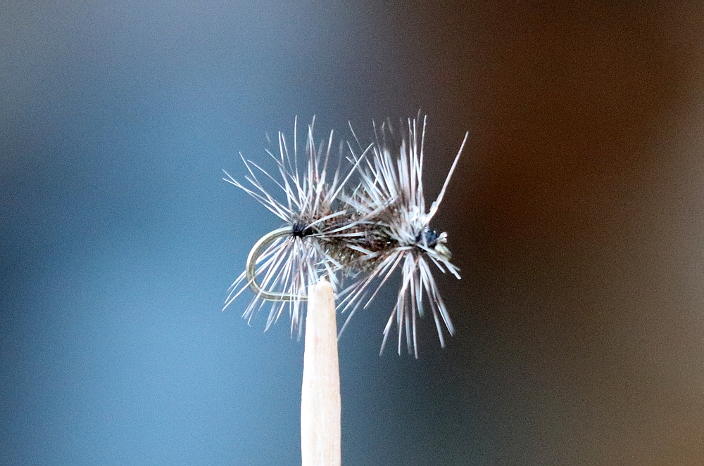 | Auf einen kurzschenkligen Trockenfliegenhaken,