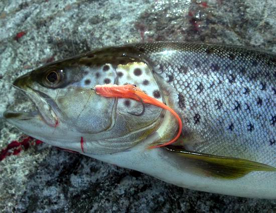 Heute morgen sind wir um 5:00 Uhr auf. Um 6:00 Uhr stehen wir am Wasser. Still liegt die See, aber auch die Forellen. Nix los. Dann sehe ich einen Fisch an der Oberfläche, werfe ihn an und nach dem 2. Stripp hängt eine 40er, die nach dem Drill weiter schwimmen darf. Im flachen Wasser sehe ich den ersten und einzigsten Borstenwurm dieser Tour. Andy fängt noch eine kleine Forelle und sieht noch 2 weitere Fische an der Oberfläche, aber die sind zu weit Draußen. Es ist kalt und wir entscheiden uns für eine Aufwärm-Pause. Um 16 Uhr stehen wir wieder am Wasser und Andy fängt nach 20 Minuten am Riff ein schöne 55er. Ich verliere nach 1 Stunde einen 50+ Fisch. Es sollte für mich der einzigste Biss heute nachmittag bleiben. Andy fängt gegen Abend seinen ersten Hornhecht mit der Fliege und eine 40er Forelle (darf noch wachsen). Danach geht es Richtung Hütte. Morgen ist auch noch ein Tag. |