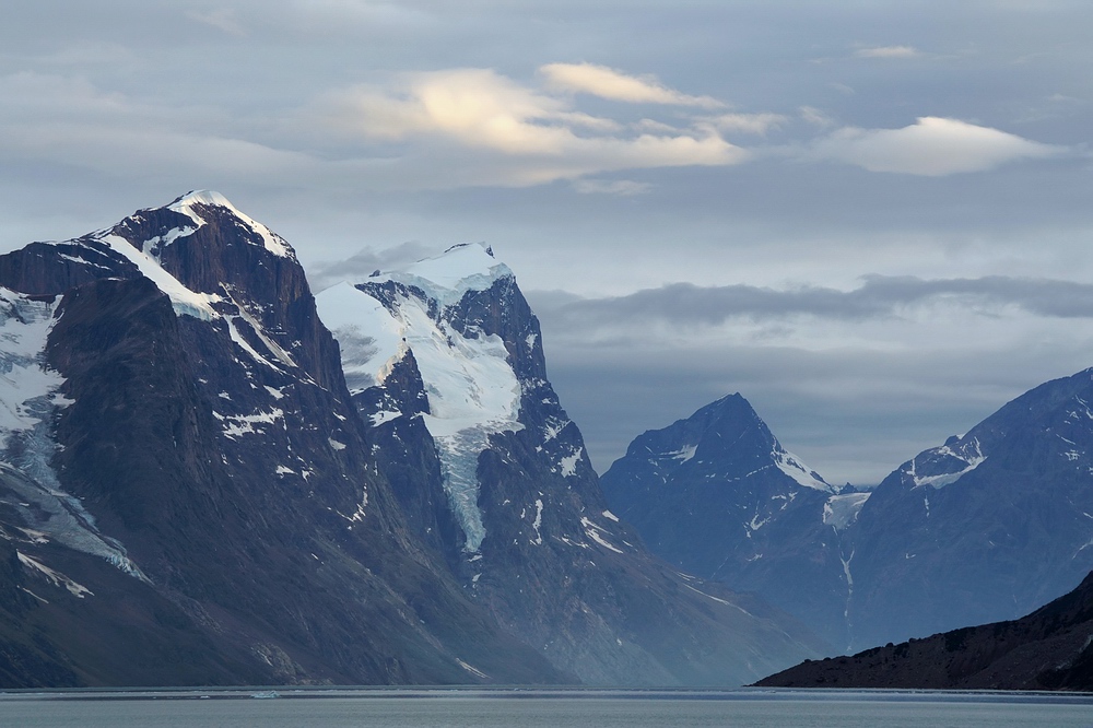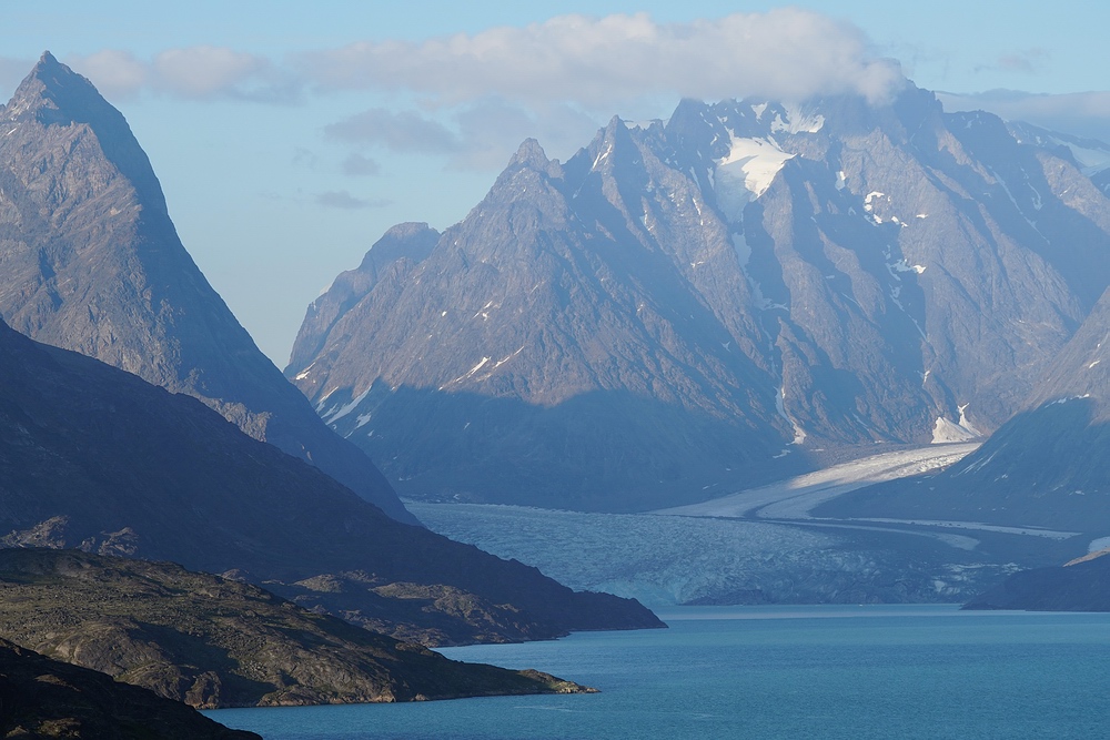 Mit viel Herzklopfen blasen wir also unsere Boote auf, beladen sie mit Proviant für drei Wochen, und stechen damit „in See“. Das Meer präsentiert sich zwar in nebelig-düsterer Stimmung, sodass wir das gegenüber liegende Festland nur schemenhaft erkennen können. Wind und Wellen sind uns aber gnädig, sodass wir nach etwa zwei Stunden erleichtert in den bezeichnenderweise Ewigkeitsfjord genannten Meeresarm einbiegen, dem wir eine knappe Woche ins Binnenland folgen werden. Tiefblicke in den fast 100 km langen, gewundenen Fjord zeigen riesige, einmündende Gletscher und bizarre, schneebedeckte Gipfel. |