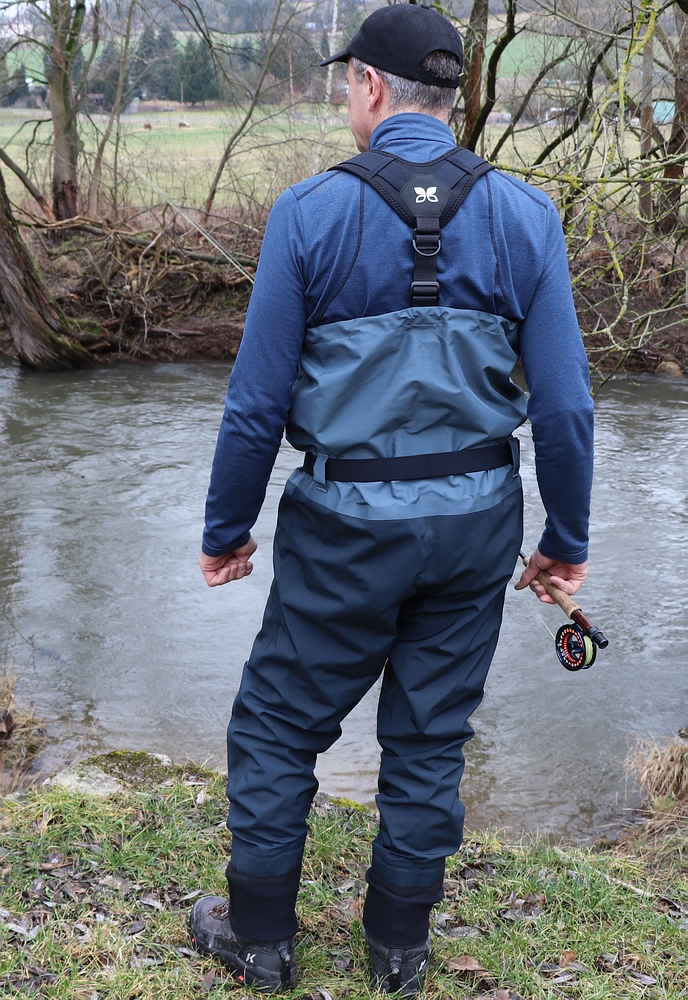 vorne und hinten an der Wathose bieten auch vertikal genug Spielraum, sodass