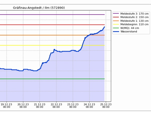 Gegen Ende des Jahres ging der Pegelstand der Ilm noch einmal sehr in die Höhe .... |