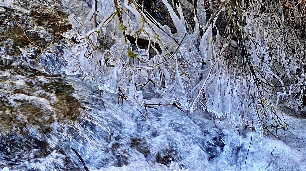 Der frostige Winter zaubert glitzernde Mini-Skulpturen in Bach & Fluss