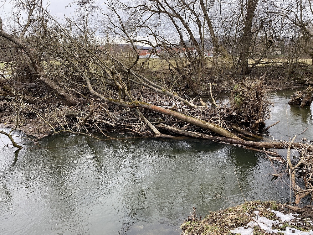 Biber wieder ganze Arbeit bei der "Neugestaltung" des Flussbettes geleistet