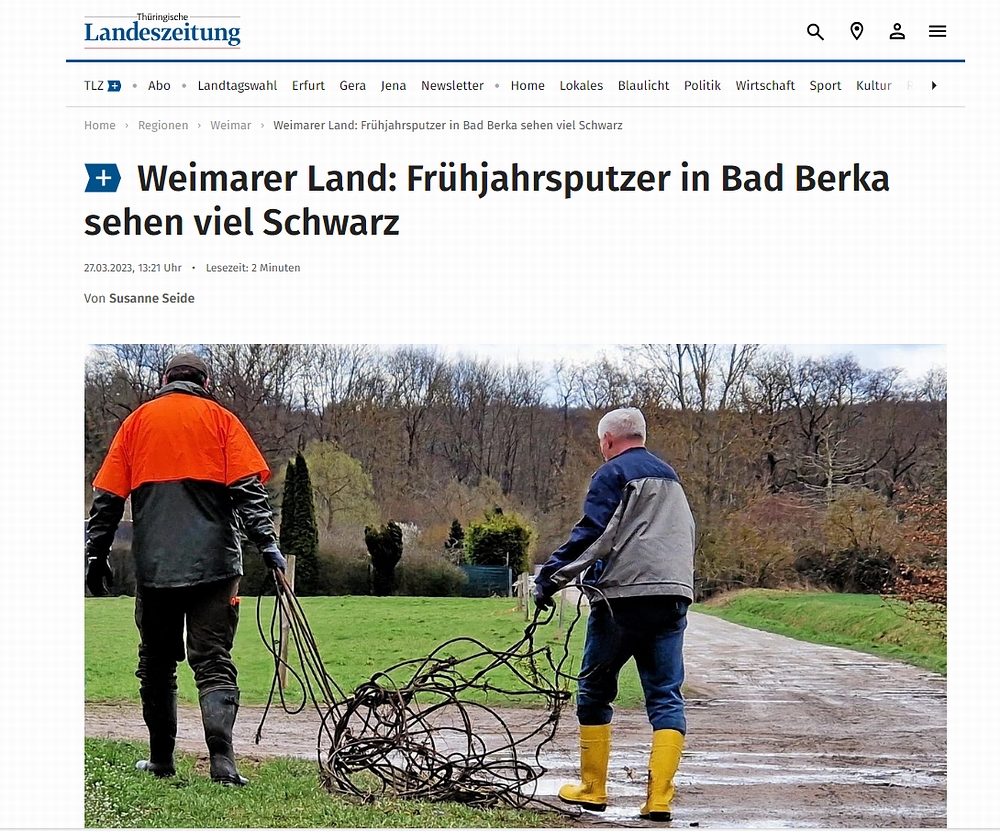 hier gehts zum vollständigen Artikel: https://www.tlz.de/regionen/weimar/article238001463/Weimarer-Land-Fruehjahrsputzer-in-Bad-Berka-sehen-viel-Schwarz.html