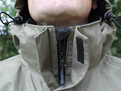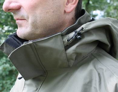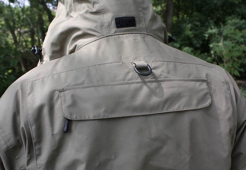 | Alle Einstellmöglichkeiten und Bedienelemente an der Amphibian lassen sich gut und rasch zugänglich bedienen, alle Nähte wurden präzise ausgeführt und von Innen verklebt. Die Jackenlänge reicht bei Fischern um 1,80 Meter bis etwa zur Hälfte über das Gesäß herunter. Am Fischwasser leisteten die durchdachten, vollständigen Funktionen der Amphibian sehr gute Dienste. Auch die Wasserdichtheit und Atmungsaktivität ließen aus unserer Sicht beim Fischereinsatz unter verschiedensten Witterungen nichts zu wünschen übrig, die Jacke hält den Fischer stets warm und trocken. Die Oberfläche des Stoffes lässt das Wasser anfangs schnell abperlen. Bei länger dauernder Nässeeinwirkung nimmt die Oberfläche im geringen Umfang Wasser auf, trocknet jedoch auch ebenso schnell wieder. |