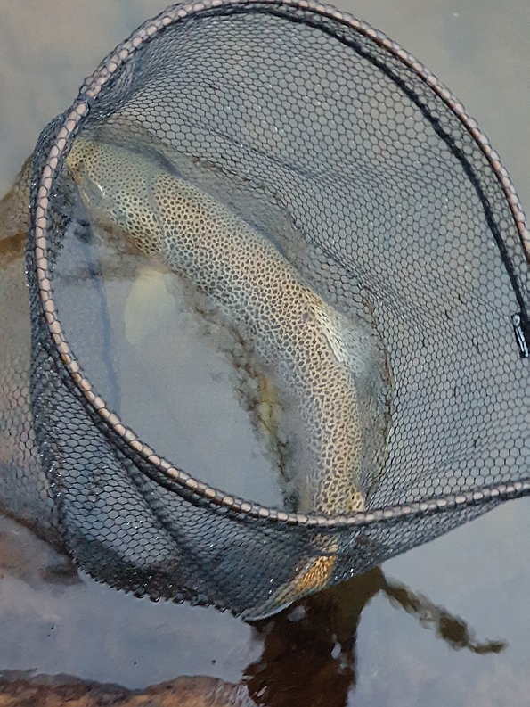 weiter, ehe Manfred die Forelle keschern konnte. Vor uns lag eine wunderschöne,