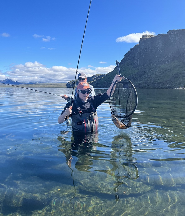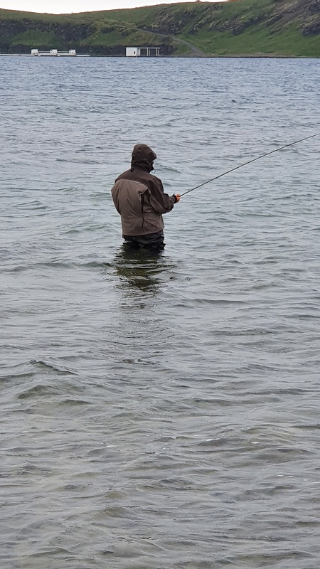 Als wir gegen kurz nach 19 Uhr am Villingavatn ankamen, trafen wir wieder den uns schon bekannten Guide mit seinen drei Engländern. Wir kamen etwas ins Plaudern und er erzählte uns, dass er neben seiner „normalen“ Guidetätigkeit im Mai/Juni jeweils ganze Wochen für 3 oder 4 Fliegenfischer anbietet, die bei ihm wohnen und von seiner Frau bekocht werden. Daneben gab er uns sogar noch ein paar Tipps, wie wir fischen sollten. Die drei Engländer und er hatten an diesem Tag vier Brown Trout gefangen: Eine mit 7 Pound, eine mit 5 Pound und zwei kleinere mit ca. 45 cm. Wer die Fische fing, haben wir nicht gefragt… Wir versuchten es zuerst