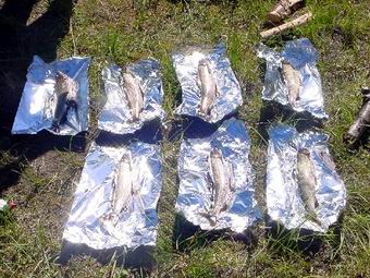Nach dem Fischen macht es Spass am Räucherofen (oben), gemeinsam gemütlich zu speisen... Oben rechts: Sauna am See... Leider gibt es sehr viele Mücken..... |