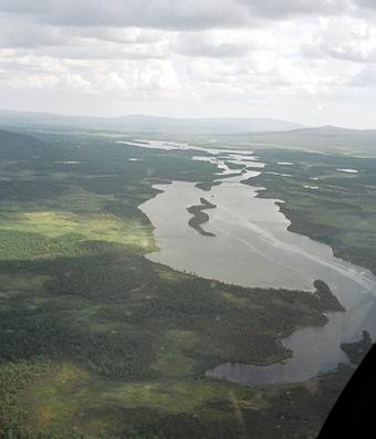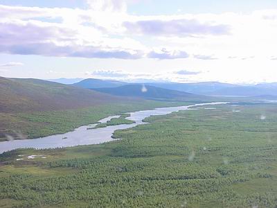 Ein Bilder-Bericht von Christian Treichel Nach einer anstrengenden Reise stieg ich endlich im winzigen Flughafen von Kiruna in den Hubschrauber, und los ging es - in die pure Natur: ins TJUONAJOKK FISHING CAMP an den Oberlauf des Flusses Kaïtum. Hier sind zunächst einige Bilder vom Flug: Vom Hubschrauber aus konnte ich mir den den Kaïtum genauer ansehen. Es handelt sich einen für meine Begriffe sehr breiten Fluss, in welchen man von einer Stromschnelle zur anderen mit dem Boot fährt. |