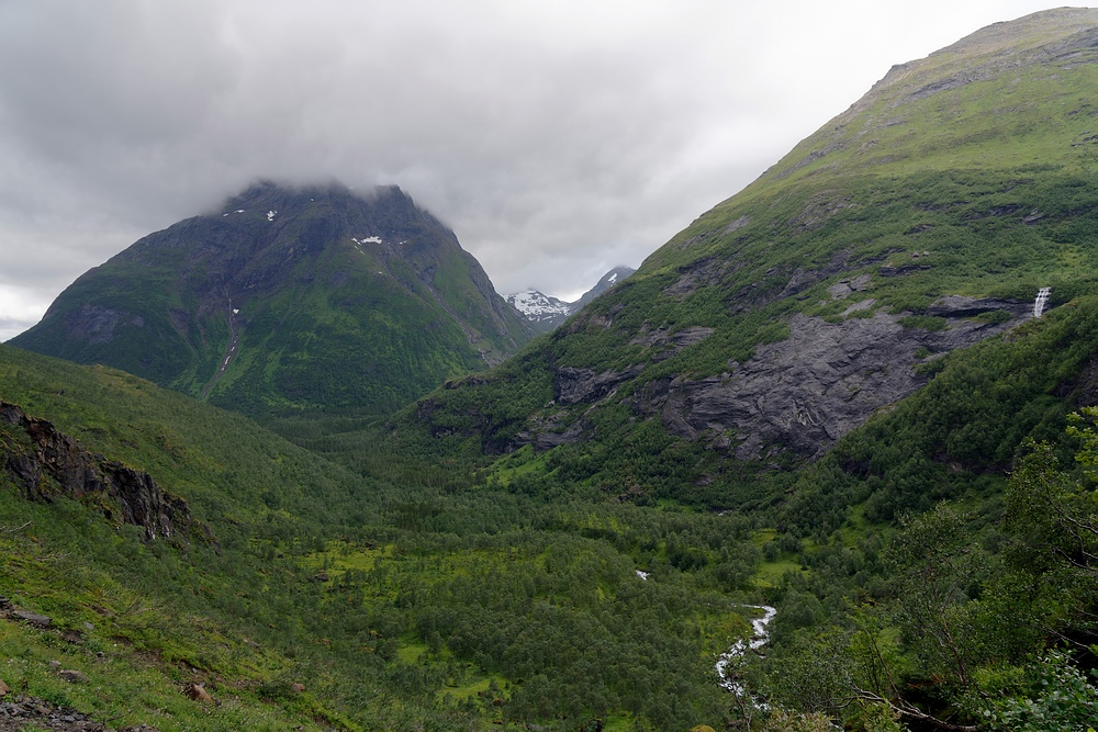 wir das Ende des Fjords, wo ein kleiner Fluss namens Austerdalselva einmündet.