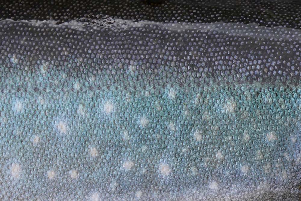 | Die Südseite des Kabtajaure besteht aus felsigen Vorsprüngen und kleinen Buchten, am Grund liegen Blöcke und Steinplatten mit bizarren geometrischen Formen. Im Seichten ist kein Schwänzchen zu sehen, und auch Ringe steigender Fische sind nicht auszumachen. Wir nehmen uns nicht viel Zeit und versuchen mit der Spinnrute festzustellen, ob in diesem extrem nährstoffarmen Gewässer größere Fische leben. Tatsächlich rappelt es nach allen paar hundert Metern schleppen, und wir können im Freiwasser einige schöne Saiblinge fangen. Am besten klappt es dort, wo bei Felsvorsprüngen Würfe vom Ufer in Bereiche mit großen Blöcken am Seegrund möglich sind. Es handelt sich um Saiblinge mit endständigem, großem Maul, so wie es für räuberische Freiwassersaiblinge typisch ist. Ähnlich wie in manchen Alpenseen kommen auch in vielen skandinavischen Seen mehrere Saiblingsformen („Ökotypen“) vor, die sich in entwicklungsgeschichtlich kurzer Zeit nebeneinander entwickelt haben. Beispielsweise zusätzlich in der Tiefe lebende, kleinwüchsige Formen, die sich vorwiegend von Bodentieren ernähren und typischerweise größere Augen und ein kleineres, leicht unterständiges Maul aufweisen. Ich finde am Kabtajaure ein tot an der Oberfläche treibendes, 25 cm langes Exemplar, das genau diese Merkmale aufweist. |