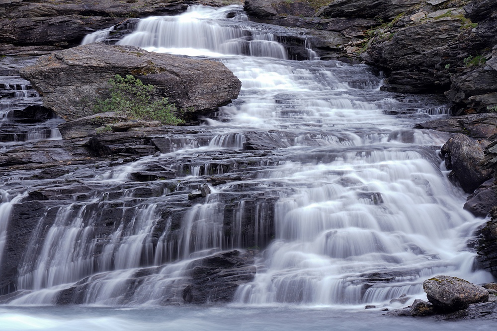 mit Wasserfall im Hintergrund