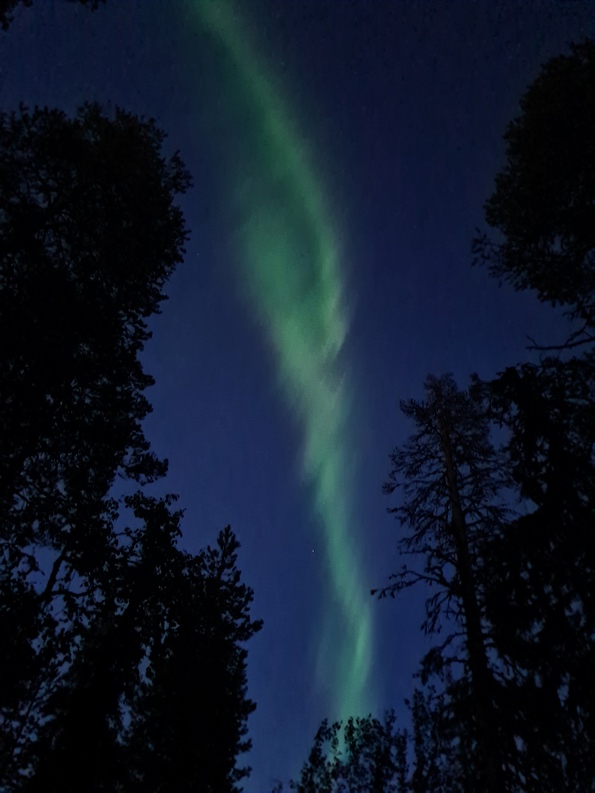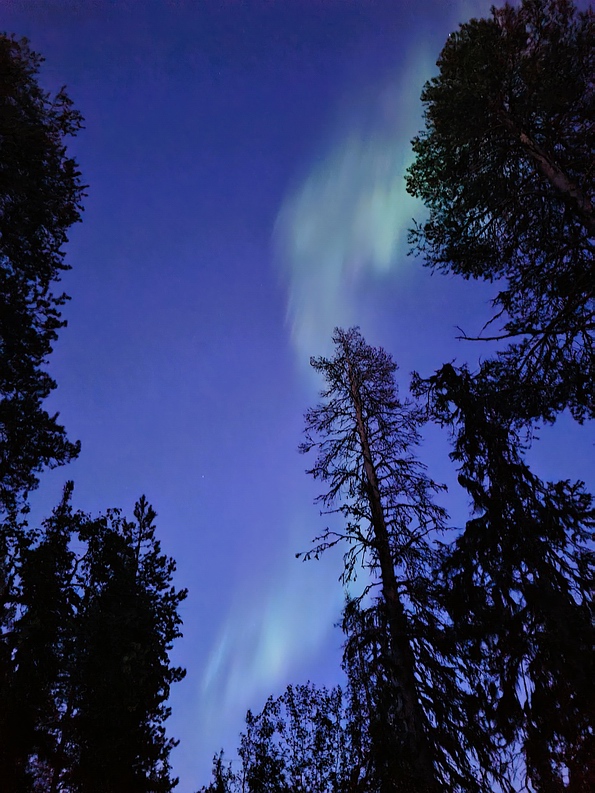 | Wir wurden noch mit einem sehr schönen Sonnenuntergang belohnt und gingen mit Kopflampen zurück zum Zelt. Dort angekommen gab es Trekking Nahrung, Couscous mit Hühnchen. Als wir so am Essen waren, meinte Sven so: schau mal in Himmel, die Wolke sieht aber komisch aus! Als ich nach oben schaute konnte ich meinen Augen kaum glauben, die Wolke wurde grün und fing an sich zu bewegen... So aßen wir unser Abendbrot, während über uns die Polarlichter den Himmel verzauberten. Das war ein wunderschöner Abschluss eines tollen Angeltages. |