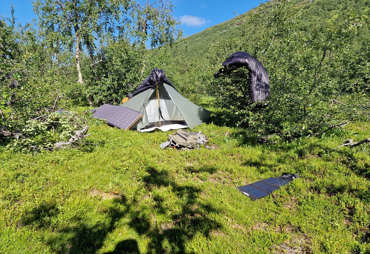 Dieses Jahr hatten wir uns wieder für Schweden entschieden und aufgrund einiger gesundheitlicher Einschränkungen wurde es diesmal auch eine etwas weniger abenteuerliche Tour. Wir ließen die Packrafts dieses Mal Zuhause und planten die Tour so, dass wir nur einen kleinen Teil der Strecke komplett weglos unterwegs sind. Ein erkennbarer Trampelpfad und hin und wieder mal eine paar Holzbohlen über den Sumpf machen das Wandern schon deutlich angenehmer. An dieser Stelle nochmal eine Entschuldigung, dass