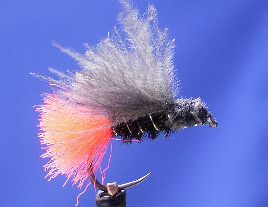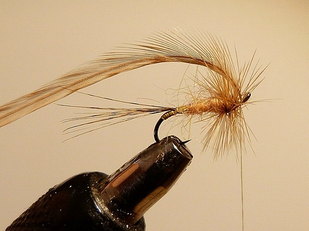 1. Nach Legen der Grundwicklung je nach Hakengröße 3-6 Fasanenstoßfiebern als Schwänzchen einbinden und mit dem (kolorierten) Bindefaden zweimal unterwickeln, damit die Fiebern fächerförmig abstehen. Das überstehende Material nicht entfernen 2. Einen ca. 7 cm langen Strang Tauben-Zephir aufspleißen. Man braucht nur einen der 4 Stränge. Diesen Strang mit 2 Windungen auf Höhe der Fasanenfiebern einbinden, dann den Bindefaden bis ca. zur Mitte des Hakenschenkels winden. 3. Mit einer Hechelklemme Fiebern und Garn verdrallen, dann bis zur Hakenmitte winden und mit dem Bindefaden abfangen und die Windungen mit etwas Lack sichern. Überflüssiges Material abschneiden. Es sollte ein segmentierter, leicht konisch zulaufender Körper entstanden sein. 4. Die CDC Federn, zuerst dunkel, dann hell „Rücken an Rücken“ aufeinander legen und Kiel zuerst, nach hinten zeigend so einbinden, dass die Innenseiten nach oben zeigen, die Federn sollten ungefähr mit dem Schwänzchen der Fliege abschließen. Jetzt befindet sich die dunkle Feder unten, die helle oben. Wichtig ist, dass beide Federn noch möglichst gerade auf dem Haken liegen. 5. Für die folgenden Bindeschritte ca 10 cm des Fadens kolorieren, dann wachsen. Etwas Dubbing um den Faden spinnen, dann den Thorax formen. Für den letzten Schritt zum Öhr etwas Platz lassen. 6. Die CDC-Federn über eine Nadel nach vorne klappen, dabei die einzelnen Fibern gut sichern und mit dem Bindefaden (Pinch and Loop-Technik!!!) abfangen. Dann die überstehenden Fibern erneut umklappen und mit dem Abschlussknoten ein kleines Köpfchen formen. Dabei bildet der Faden den „Hals“, wird also nicht bis zum Öhr vorgewickelt. 7. Den Kopfknoten eventuell mit Lack sichern, das Dubbing ausbürsten und, je nach Materialmenge, ein paar CDC-Fiebern entfernen. Grüße! Flo |
