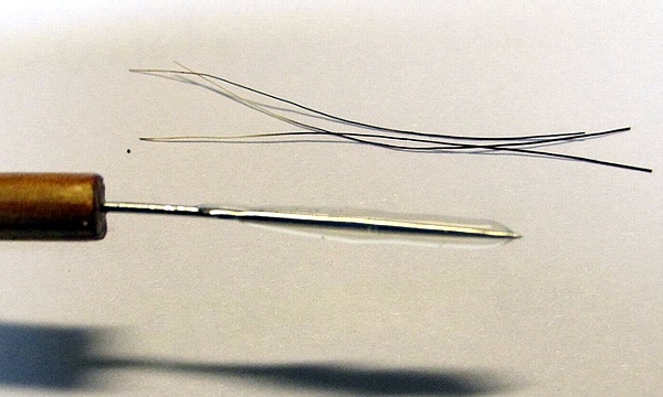 Die Dubbingnadel in das Silikon tauchen sodass ein dünner Film auf der Nadel bleibt. |