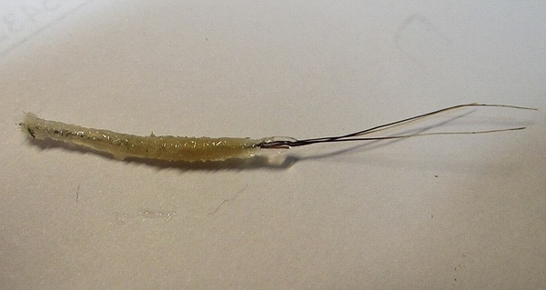 Ihr könnt die Materialien komplett nach eigenem Geschmack bzw. der Färbung der Fliegen an eurem Hausgewässer austauschen. Bei den Silikonkörpern bedarf es aber einiger Übung, bis ihr die richtige Menge an Dubbing gefunden habt mit der die Körper eurer Vorstellung entsprechen. Aber das ist ja generell beim Fliegenbinden so (erst nach 1 Duzend Fliegen entspricht das Muster in etwa der eigenen Vorstellung). |