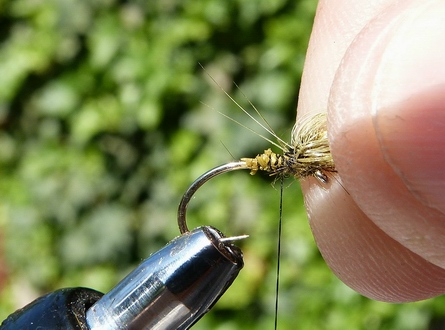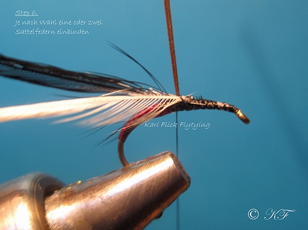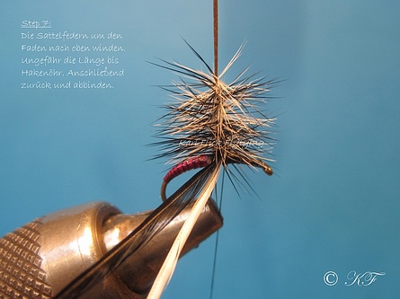 anschließend eine grizzly Hechel wie abgebildet einbinden. |