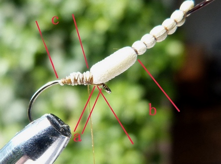 b – Platz für die Hechel c - Platz für den Loop und das Dubbing |