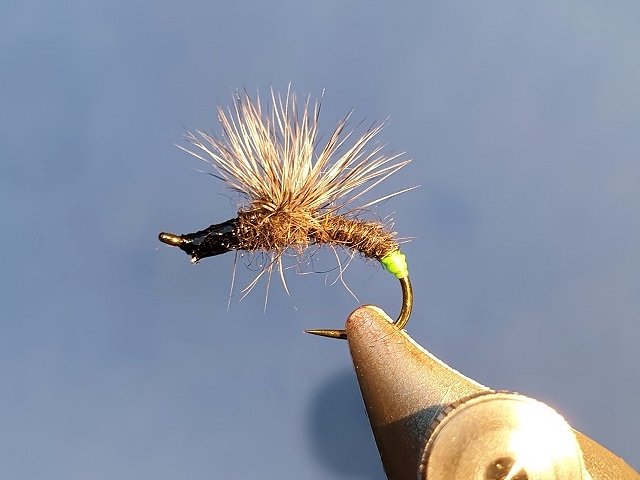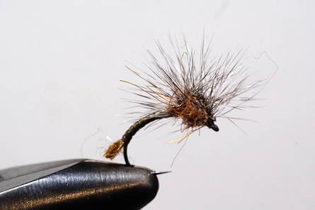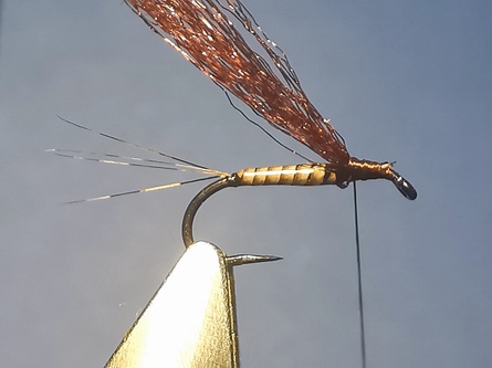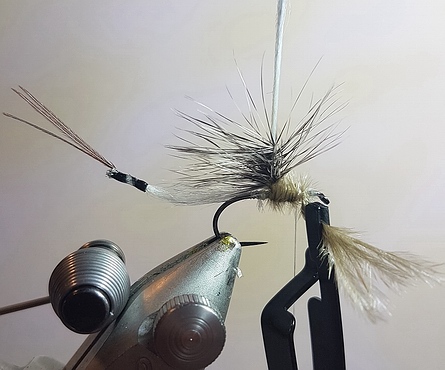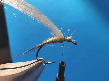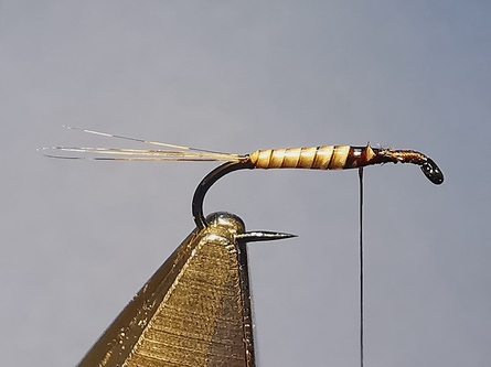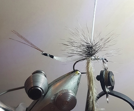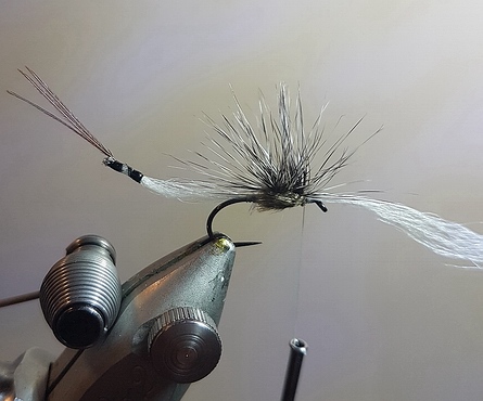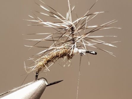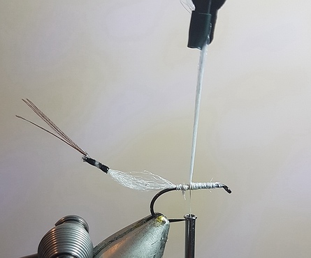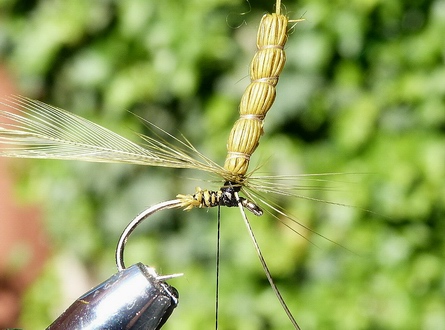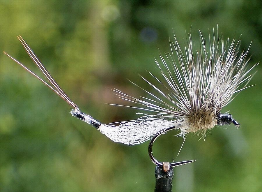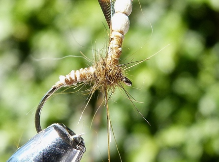 „Paraloop Foam Mayfly“ - diese sehr simple und schnelle Paraloop-Fliege, für die man nicht mal einen Paraloop-Galgen braucht, hat mich sofort überzeugt. |