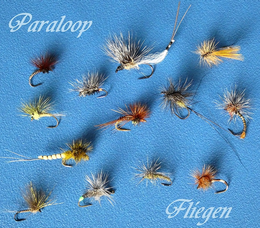 Zum Thema machten wir diesmal eine Bindetechnik: „Paraloop“. Die Technik (im amerikanischen auch gerne „Hacklestacker-Flies“ genannt) ist wohl noch nicht so weit verbreitet, bietet aber viel Möglichkeiten. Grundsätzlich liegt die Fliege tief im Wasserfilm und damit sind Aufsteiger oder Duns meist die erste Wahl. Es können aber z.B. auch ertrunkene Landinsekten, Köcherfliegen und Spents (Spinner) imitiert werden. Alle Fliegentypen waren also erlaubt und erwünscht. Das Besondere bei diesem Typ Fliege ist die Kombination von Fallschirm (Parachute) und einem Loop – der sehr unterschiedlich eingesetzt werden kann: entweder als große Öffnung wie ein Bubble-Loop (eine Luftblase soll eingefangen werden) – oder straff gezogen über einen gedubbten Thorax – oder gar über die gesamte Körperlänge (ähnlich einer Palmer-Fliege). Nachfolgend kommt wie gewohnt der Bericht, Bilder und Materialisten und teilweise sehr detaillierte Bindeanleitungen - zum Nachbinden oder einfach nur zum Anschauen! |