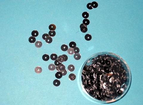 Silberne Pailletten in 6 mm bekommt man günstig in Bastelläden. |