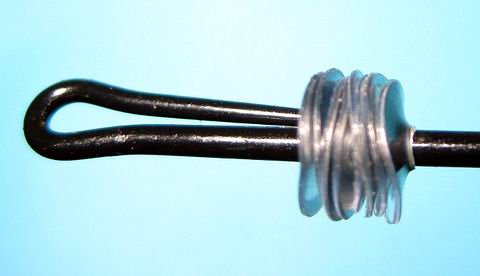 8-10 Pailletten werden auf den Haken (hier ein Ad-Swier-Haken) gezwängt, je strammer sie sitzen, desto besser... |